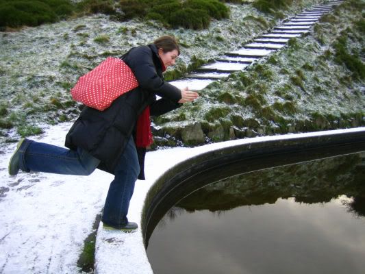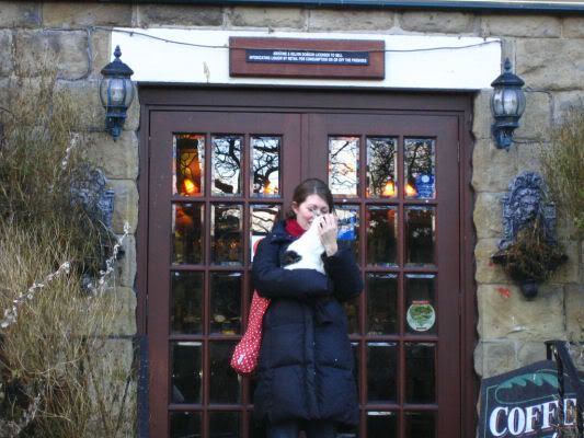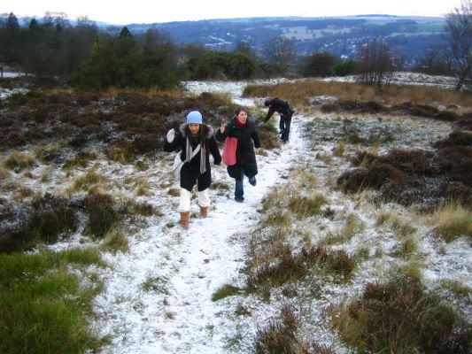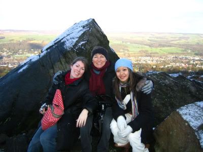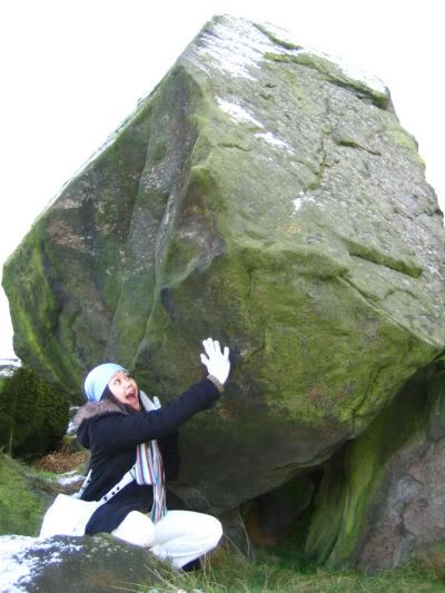 we took a day trip to ilkley moores with maeve and her mom.....it's about a 45 minute bus ride from leeds. we went only to climb that mountain because we heard there's a pub up there...........there was a pub, but it wasn't on top of the mountain as we'd hoped. it was actually at the bottom.....on the other side. but it was probably more fun than climbing arthur's seat.