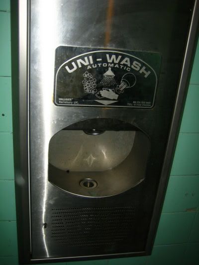 the toilet had this three in one hand wash.........the water would run for 10 seconds...and then soap would come out of somewhere....and then water would run again....and then it would shut off and then a dryer would come on all in the same little hole!!!